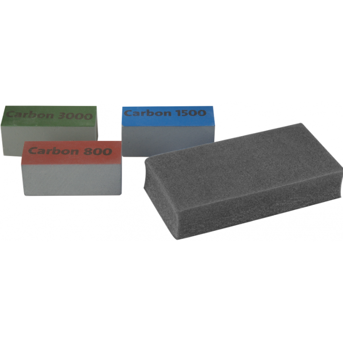 Blocchetti abrasivi realizzati in materiale carbonioso, indicati per rimuovere facilmente i difetti dalle superfici appena verniciate. Sono utilizzati a umido anche nello spot-repair per eliminare velocemente sporchini e colature dopo la verniciatura e preparare la superficie alla lucidatura.